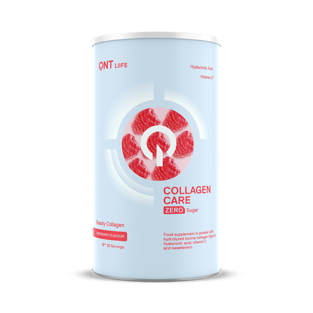 QNT COLLAGEN CARE ZERO SUGAR enthält hydrolysiertes Kollagen Typ 1 in Kombination mit Vitamin C und Hyaluronsäure. Kollagen ist ein Protein, das überall in unserem Körper vorkommt; insbesondere bildet es unsere Knochen, Sehnen, Bänder und die Haut. Eine der Hauptfunktionen von Kollagen ist es, die Haut elastisch und straff zu halten.