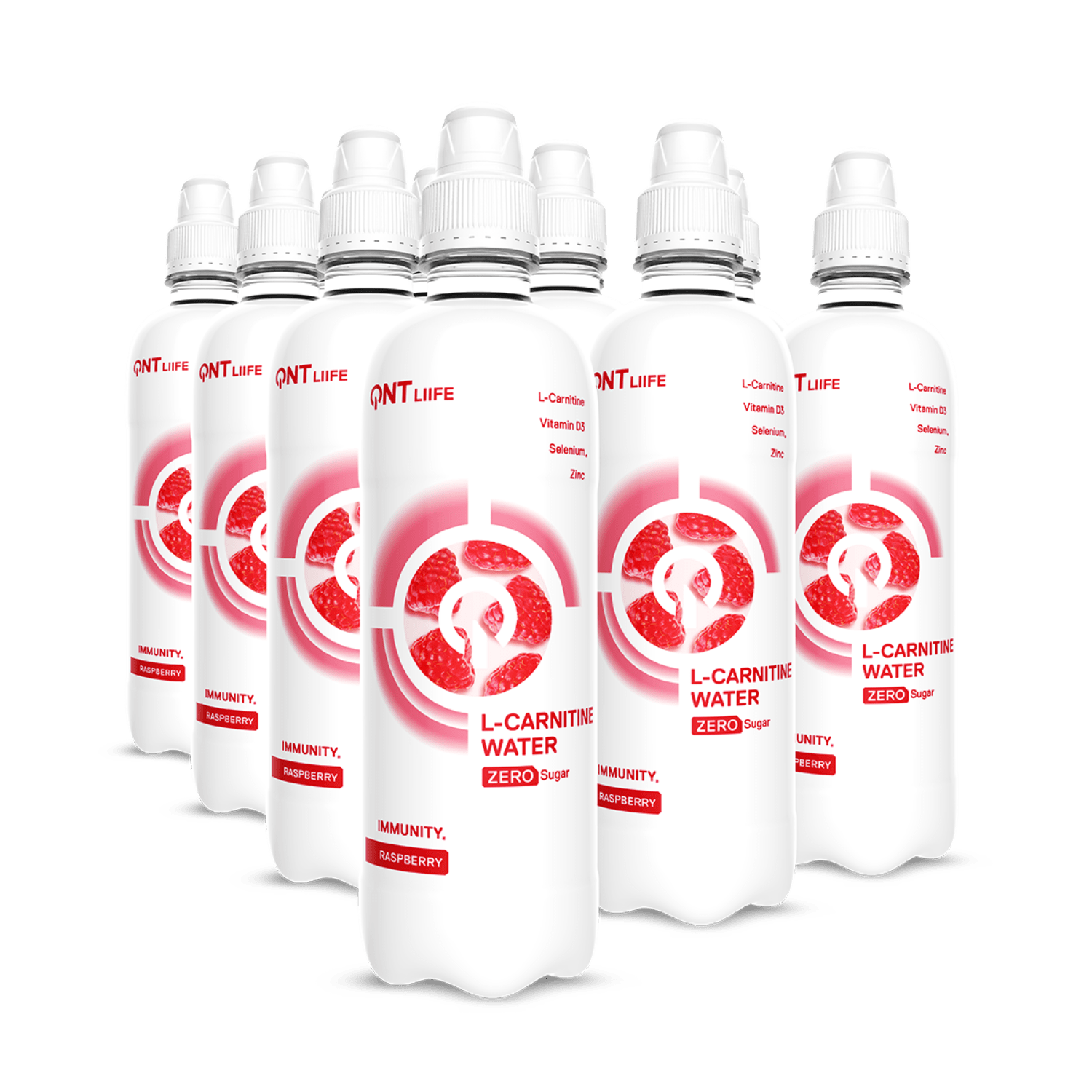 Water, acidity regulators: E330/E331(iii), vit. C, natural raspberry flavor, L-carnitine, preservatives: E202/E211/E242, sweeteners: E955/E950, zinc gluconate, sodium selenate, vit. D3.