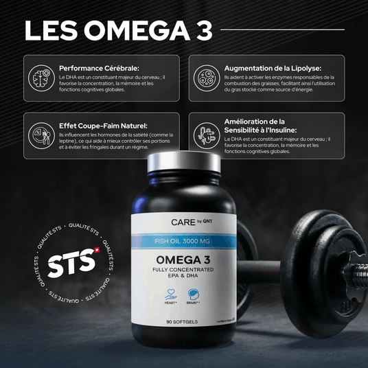 Care Omega-3: Essential for a healthy balance Often overlooked in diets, healthy fatty acids are nevertheless crucial. Omega-3s support cardiovascular health, help reduce inflammation, and play a key role in regulating fat metabolism. A guarantee of pharmaceutical quality for your internal balance.