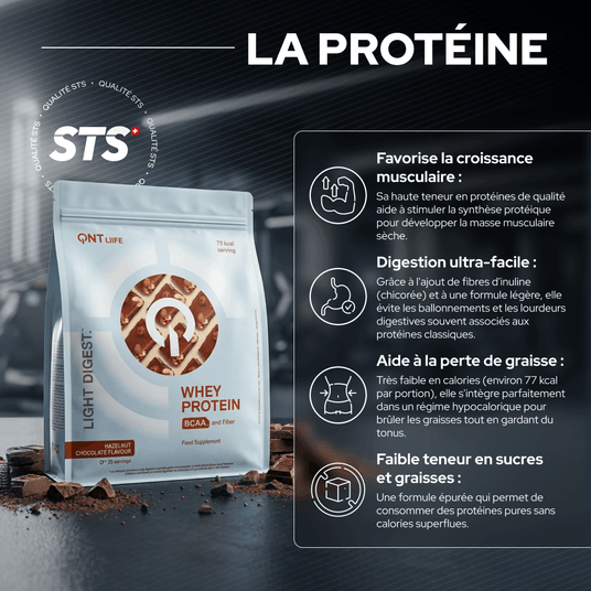 This pack brings together four pharmaceutical-quality food supplements carefully selected to act in synergy: Light Digest Whey Protein to nourish your muscles and maintain your tone, QNT Collagen to preserve your youth and beauty from within, Omega-3 Care to protect your heart and brain, and Daily Vitamins to make up for any deficiencies and boost your immunity. Products you'll find in Swiss pharmacies, a guarantee of quality and trust.
