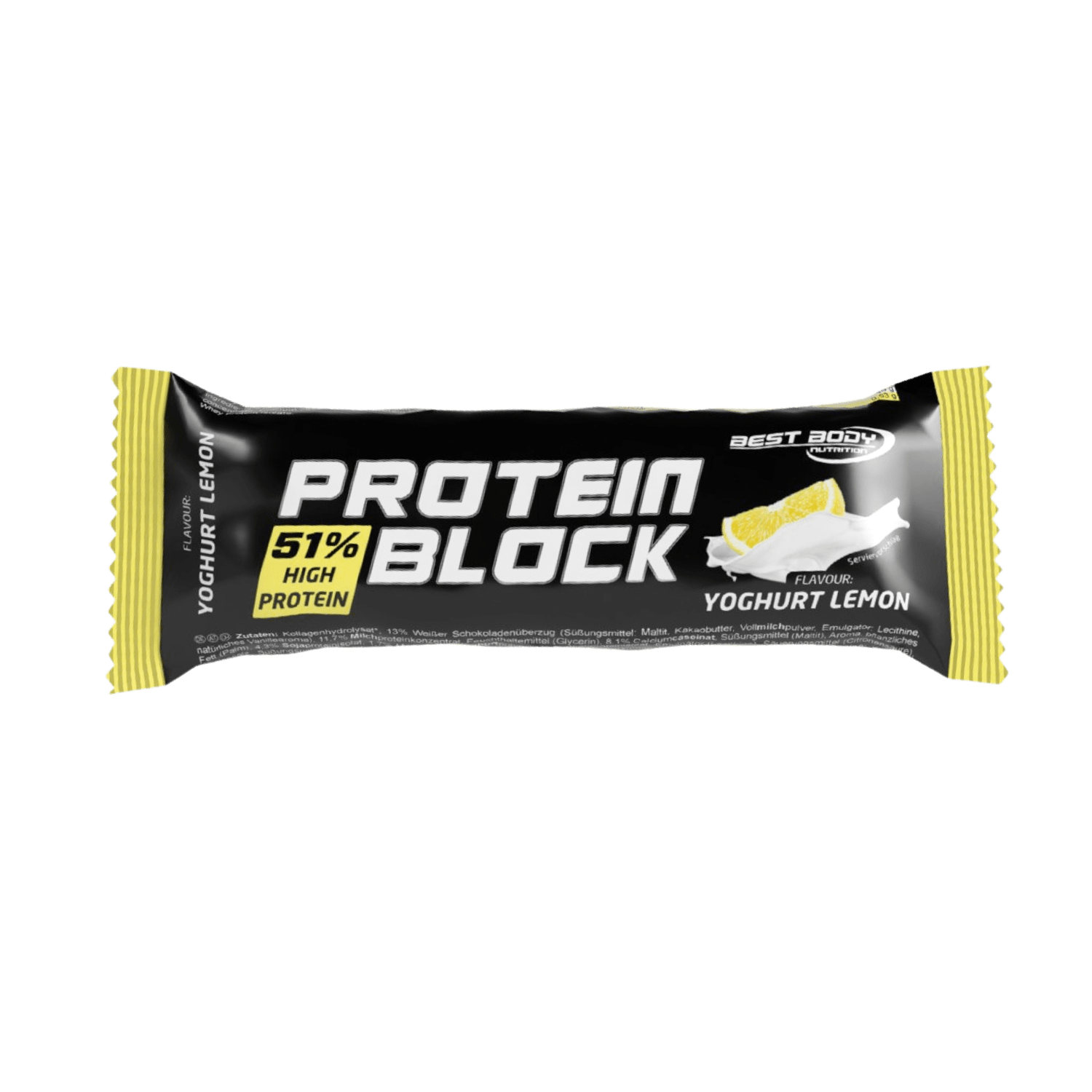 La Protein Block Bar è una barretta proteica condensata, con fino al 54% di proteine (a seconda del gusto).